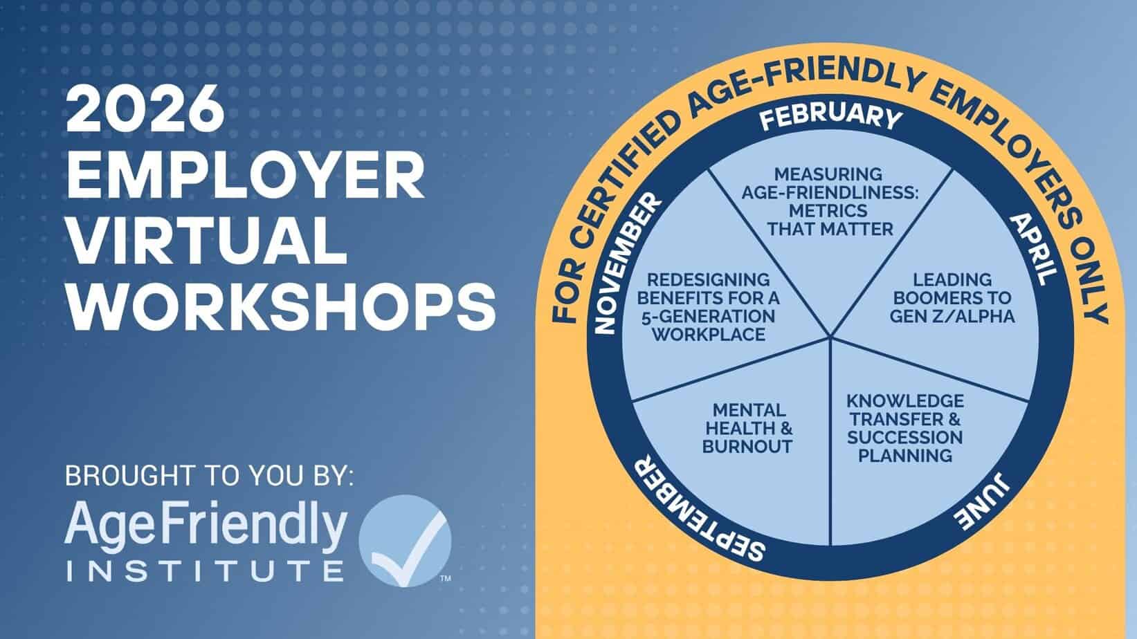 The Age-Friendly Institute is proud to present the 2026 Certified Age-Friendly Employer (CAFE) Virtual Workshop series—an exclusive professional development opportunity… Grant-Funded Program to Certify 12-15 New Jersey Employers, Combat Workplace Ageism, and Address Critical Labor Shortages Waltham, MA – The… LA MESA, Calif. — The City of La Mesa is one of the first in the state, receiving an honor… By adopting CAFE best practices and committing to training managers, pioneering employers across sectors are raising awareness of age-friendly solutions,…2026 Certified Age-Friendly Employer (CAFE) Virtual Workshop series